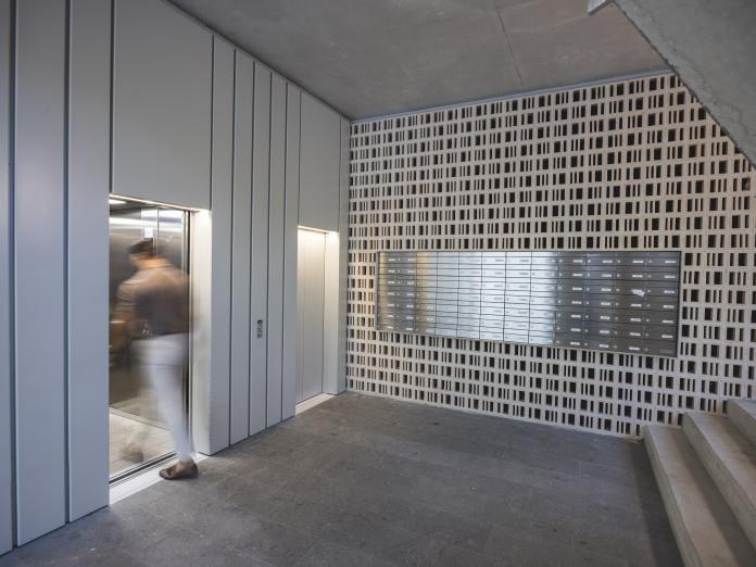 En coherencia con este planteamiento, el diseño de los ascensores de Orona se integra de forma natural en la arquitectura del edificio, respetando su materialidad y su lógica ambiental. La movilidad vertical se entiende así como un elemento más del sistema de confort y sostenibilidad del conjunto, aportando funcionalidad sin interferir en la calidad espacial de los espacios comunes.