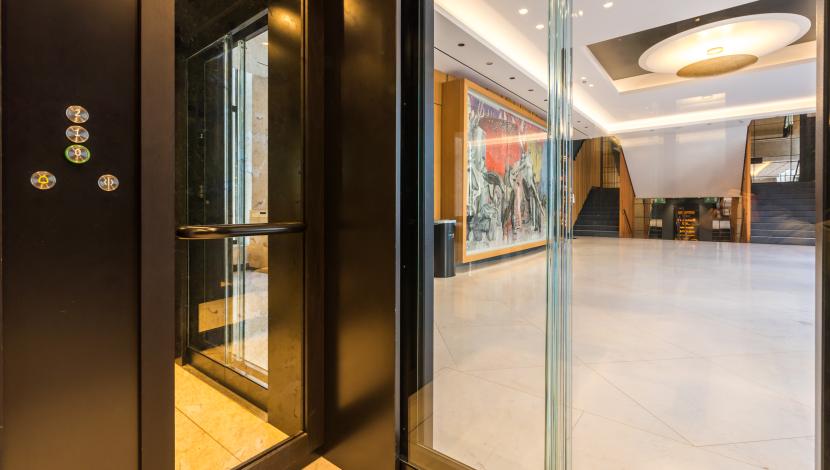 En este entorno, Orona ha incorporado un ascensor panorámico que se integra de forma armoniosa en el vestíbulo principal. La solución, con acabados en negro y vidrio, respeta la estética del edificio y aporta una presencia discreta y sofisticada. Su funcionamiento fluido facilita el tránsito del público y del personal, reforzando la accesibilidad sin alterar el carácter emblemático del teatro.
