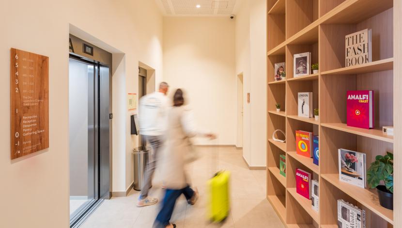 En su interior, distintos espacios; hoteles, zonas comunes y áreas residenciales que se conectan mediante varios ascensores Orona, adaptados a cada necesidad. Cabinas luminosas, accesos claros y acabados en acero inoxidable aseguran una experiencia cómoda y fluida tanto para residentes como para huéspedes.